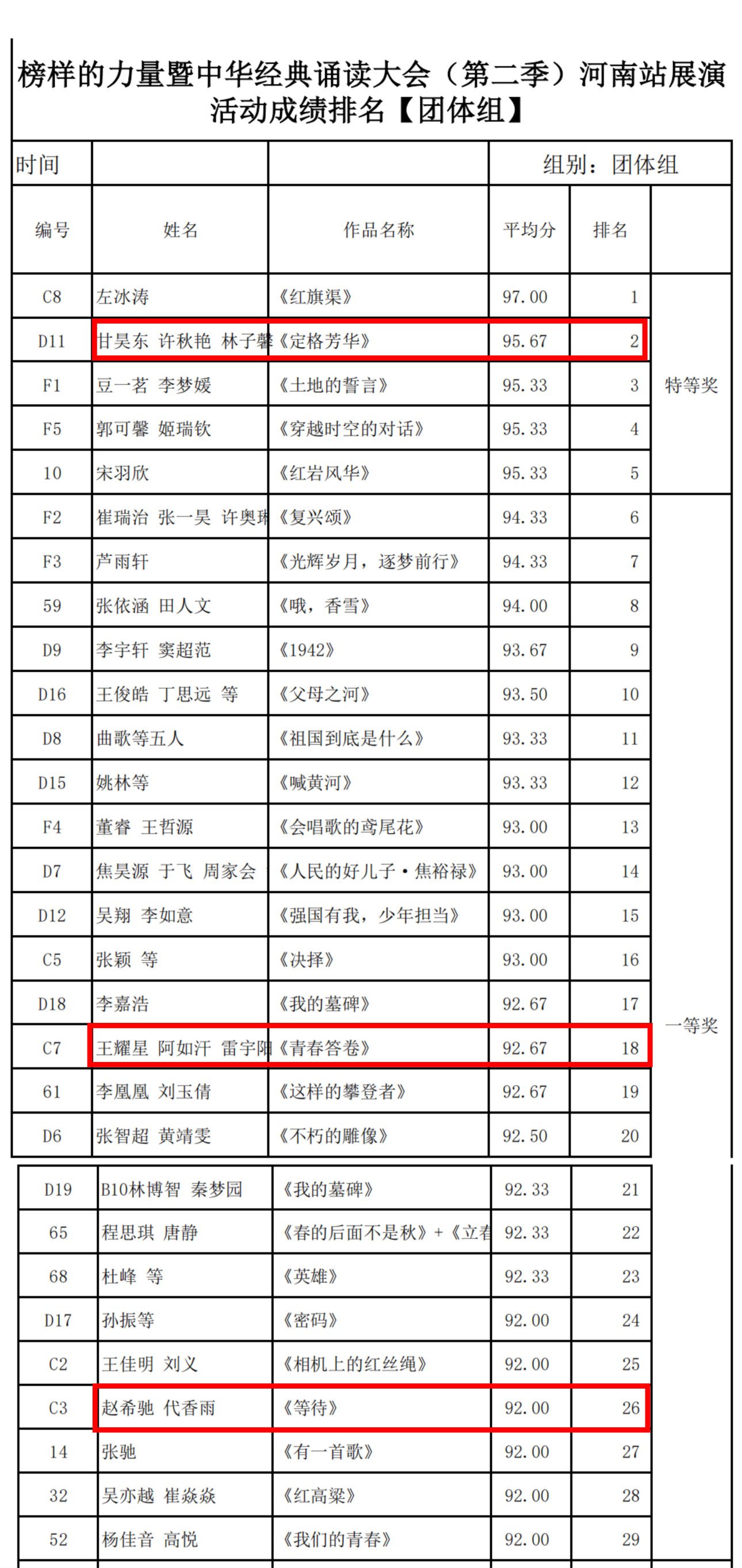 省级决赛获奖名单