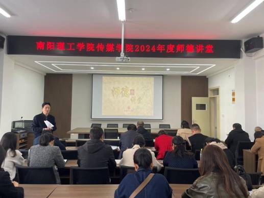 本网讯(特约记者/李志光)10月22日下午,传媒学院在学院会议室举办“南阳理工学院传媒学院2024年度师德讲堂”,讲堂由学院党委书记刘书营主持,全体教职工参加。