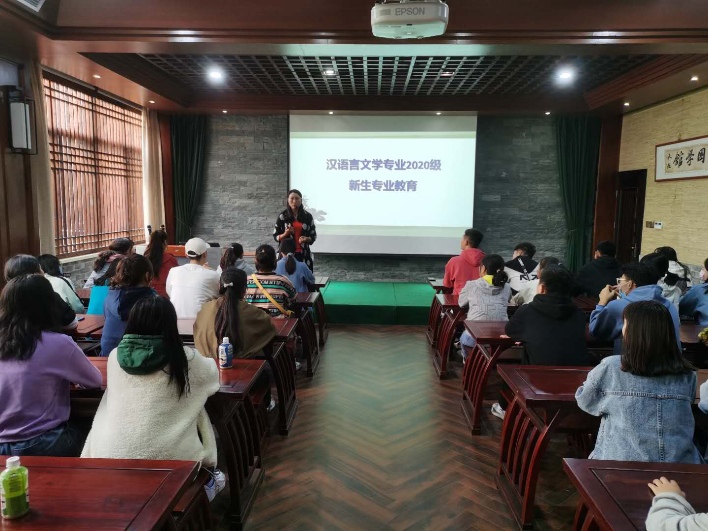 下午4时,传媒学院国学馆坐满了2020级汉语言文学专业(创意方向)的新生,学生们兴致高昂,充满期待。